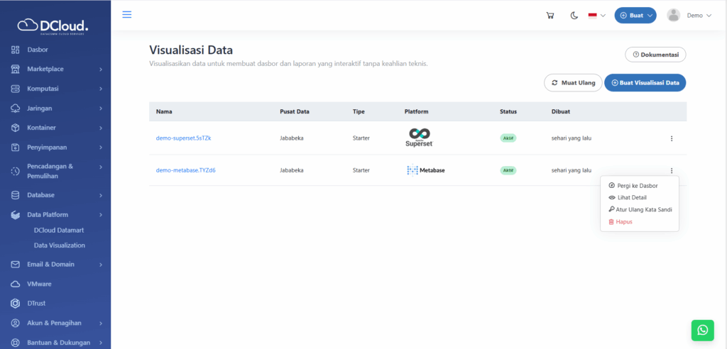 - Buka Menu Data Platform dan pilih sub-menu Data Visualization.