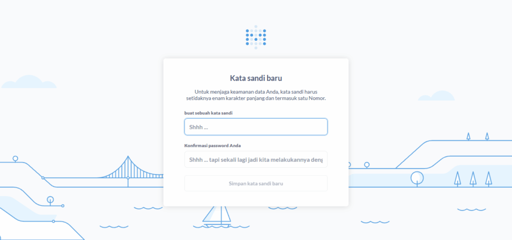 - Ketika tautan tersebut telah Anda akses, halaman pengaturan kata sandi akan ditampilkan seperti berikut: