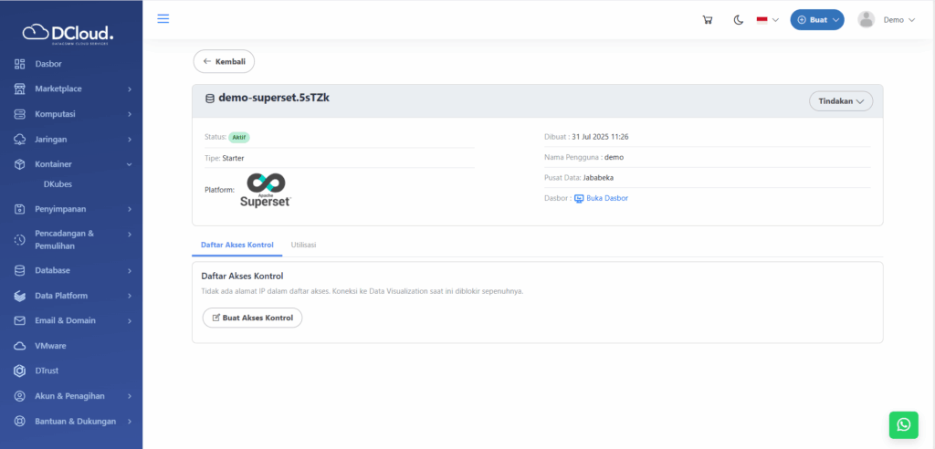 Gambar 37 Halaman Detail Data Visualization - Pilih tab Daftar Akses Kontrol, selanjutnya klik tombol Buat Akses Kontrol kemudian akan tampil seperti halaman berikut ini.