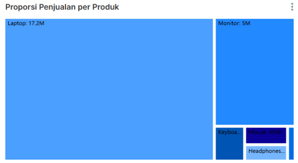 - Insight: Ukuran kotak mencerminkan kontribusi produk terhadap total penjualan.