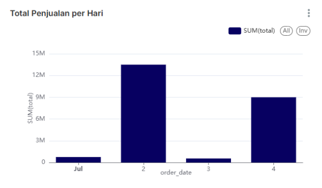 Bar Chart (Vertikal): Menampilkan tren penjualan harian, dengan contoh data sebagai berikut: