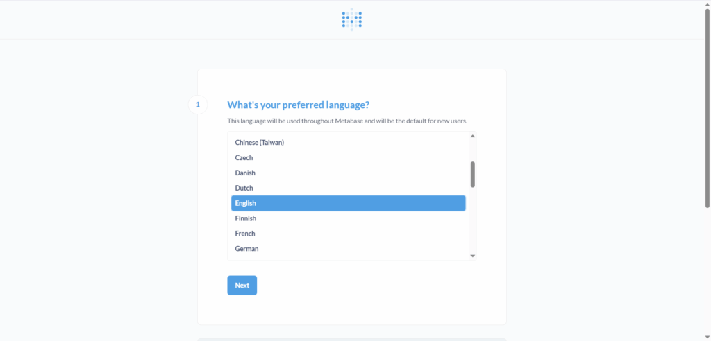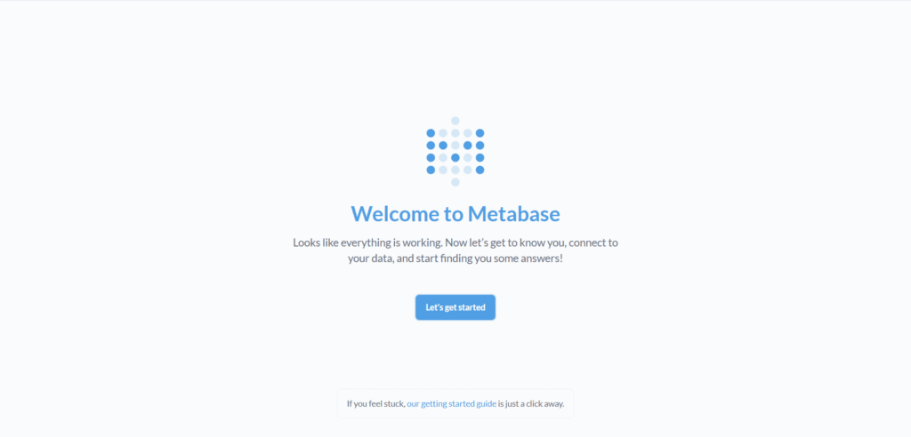 Saat pertama kali mengakses Metabase, Anda harus melakukan konfigurasi pembuatan akun Admin terlebih dahulu. Untuk melakukan konfigurasi, silakan ikuti langkah-langkah dibawah ini: