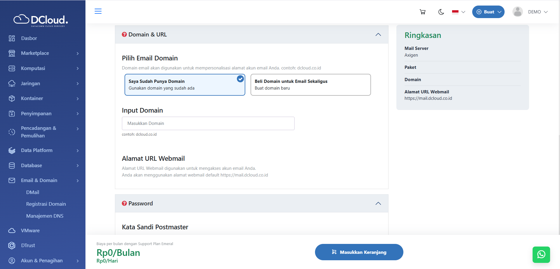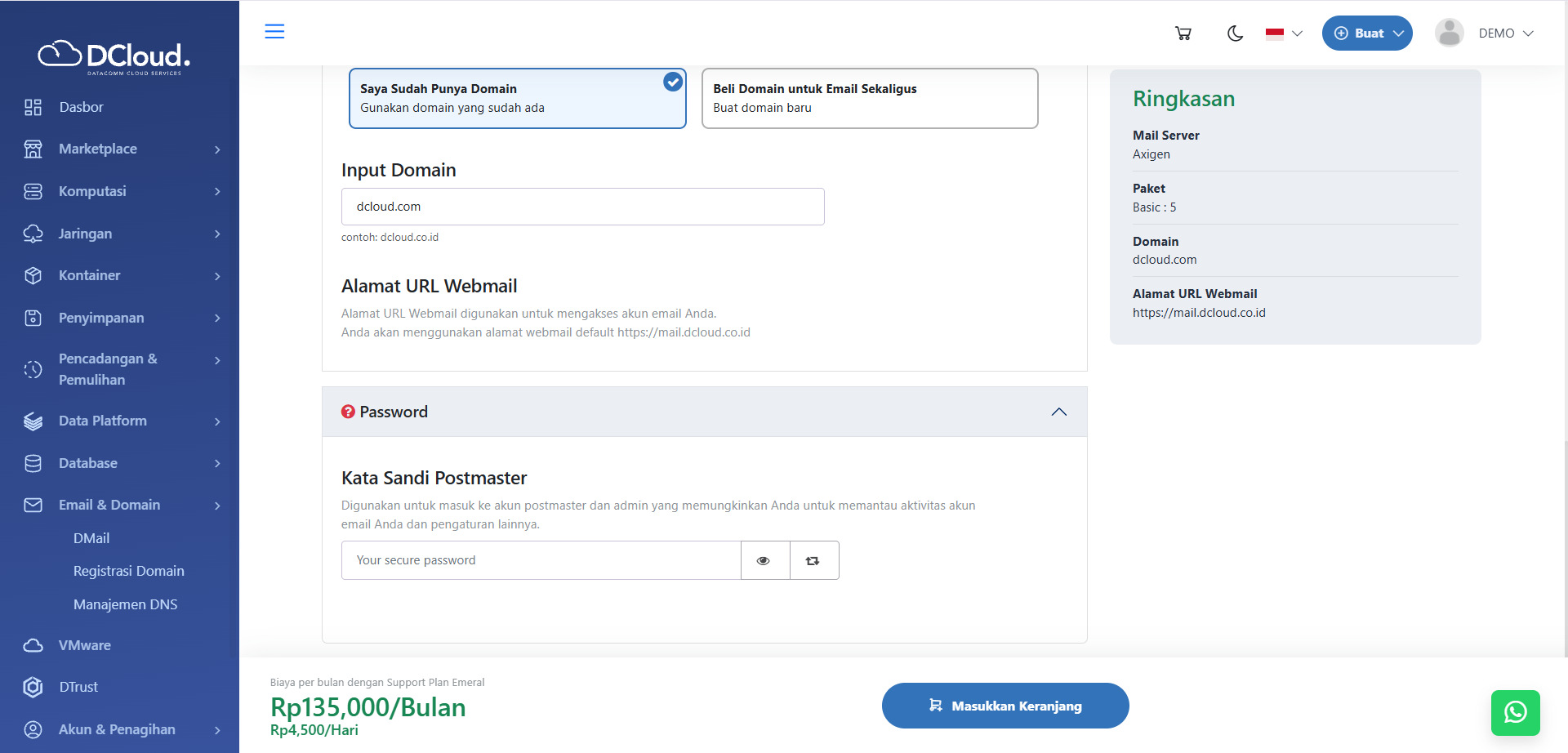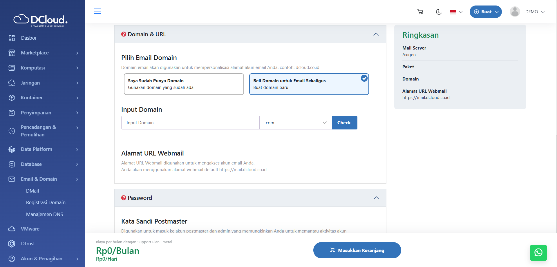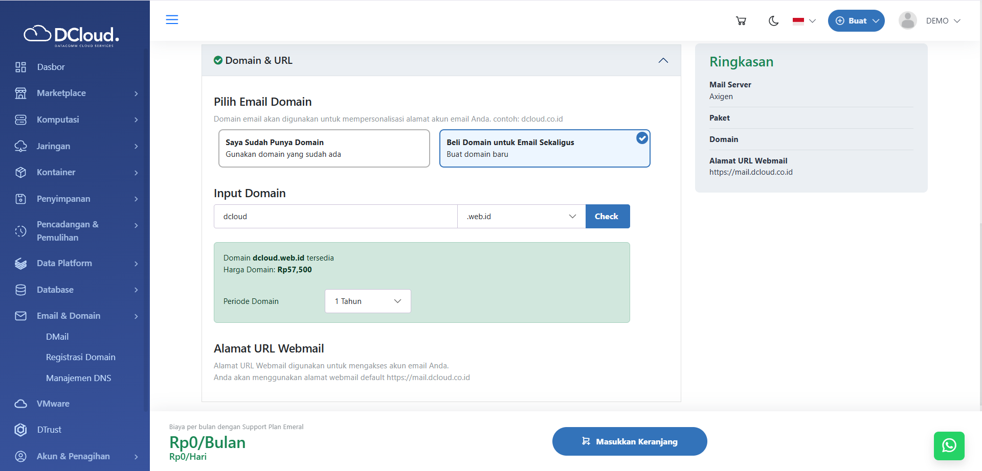 Halaman DMail Axigen Beli Domain Email