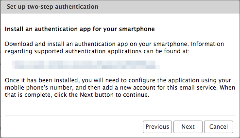 Menu Account Security - Jendela Set up two-step authentication akan ditampilkan seperti dibawah ini: