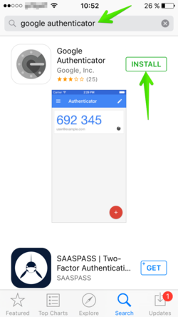 - Anda dapat mengunduh aplikasi OTP melalui App Store atau Play Store. Pada panduan ini, digunakan Google Authenticator sebagai contoh. Cari “Google Authenticator”, lalu klik Install.