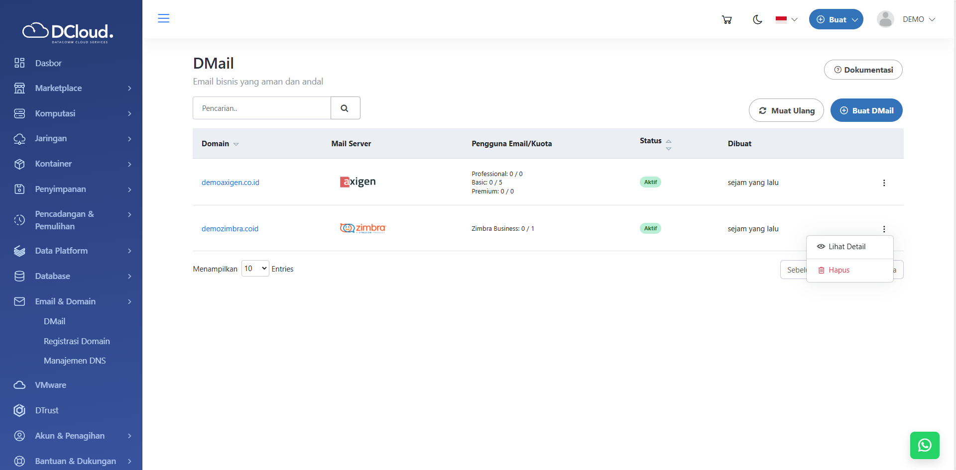 - Pada halaman DMail, tekan tombol Muat Ulang untuk memperbarui tampilan seperti pada gambar berikut.
