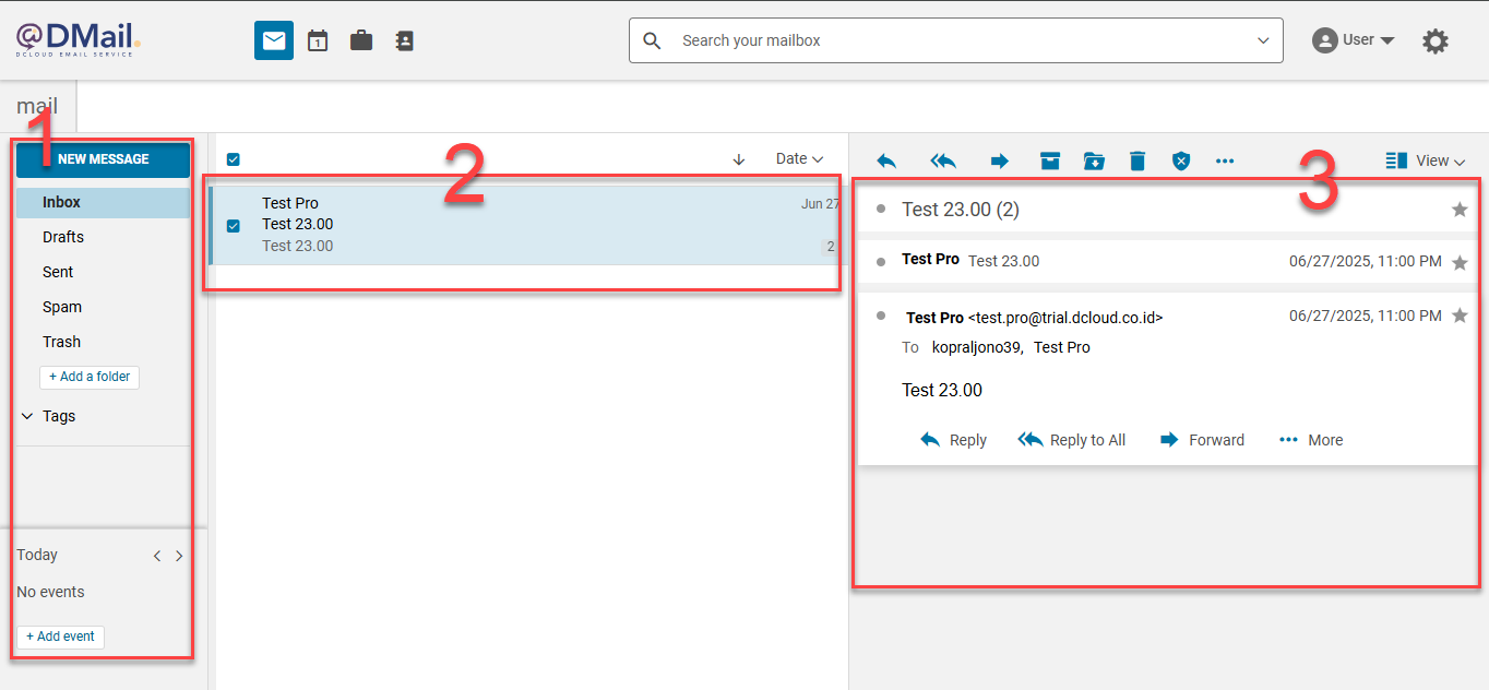 Setelah berhasil login, akan tampil halaman email yang menjadi dashboard utama Anda untuk mengelola komunikasi:
