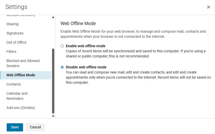 Pengaturan Web Offline Mode memungkinkan Anda mengakses DMail Web Client meskipun sedang tidak terhubung ke internet. Dalam mode ini, Anda dapat membuka email yang sebelumnya telah tersinkron dan menulis pesan untuk dikirim ketika koneksi kembali tersedia.