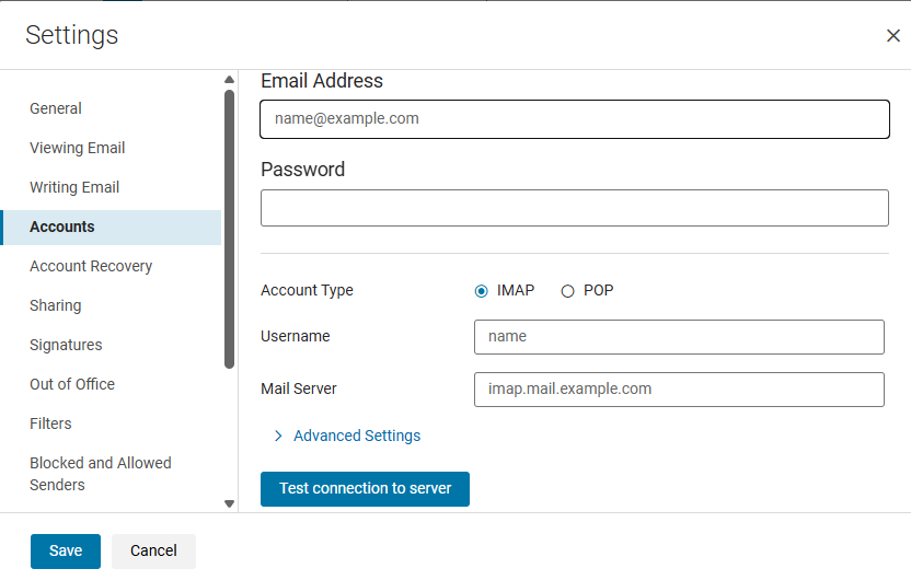 - Klik tombol Test Connection to Server untuk memastikan pengaturan server SMTP/IMAP sudah benar.