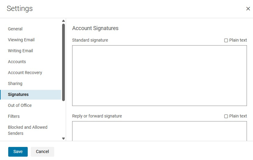 Pengaturan Signatures memungkinkan Anda membuat tanda tangan email yang akan muncul secara otomatis saat mengirim pesan baru maupun saat melakukan reply atau forward. Anda dapat membuat beberapa signature dan mengatur mana yang menjadi default.