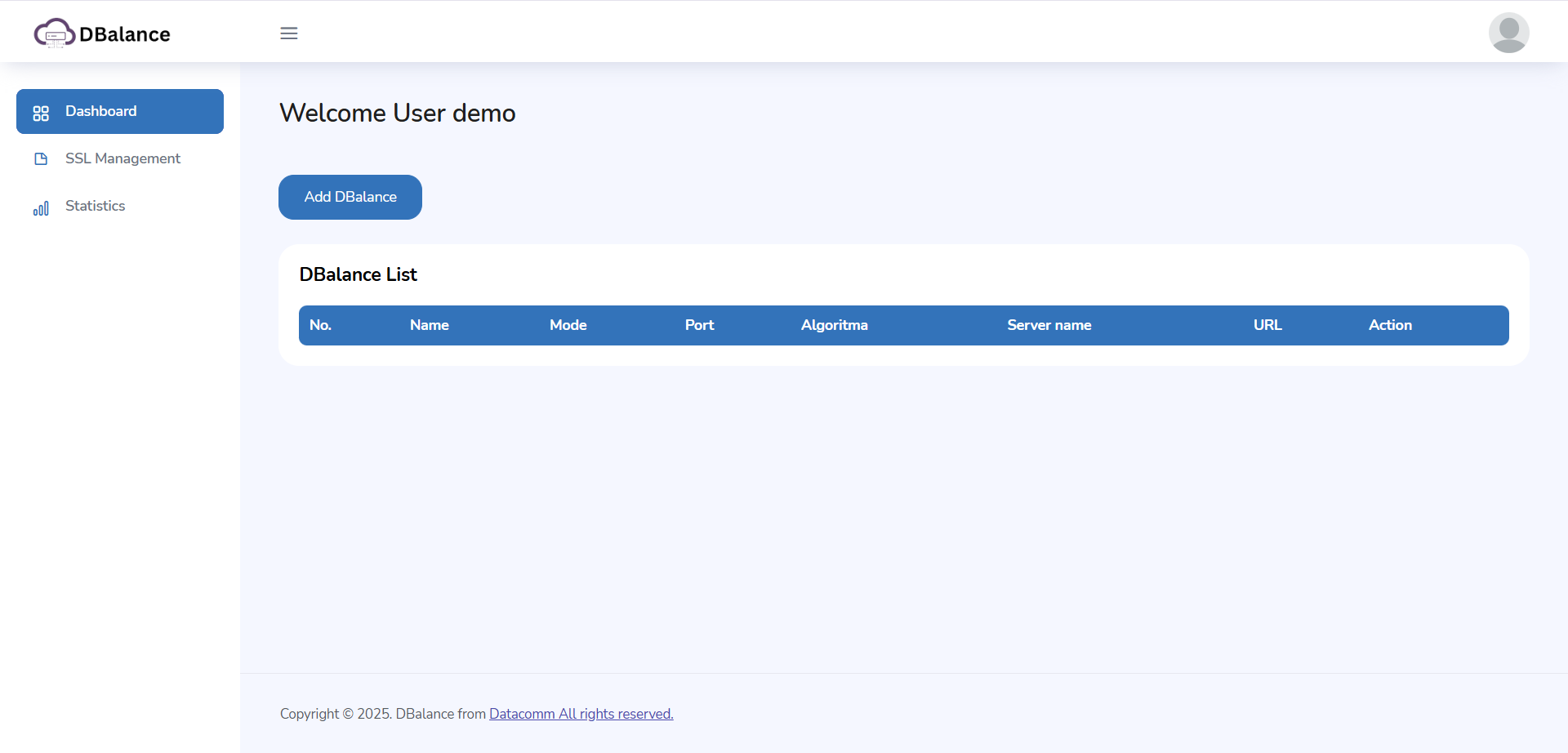 Dasbor DBalance digunakan untuk mengelola load balancer yang dimiliki. Untuk pergi menuju dasbor, silakan lakukan langkah-langkah berikut: