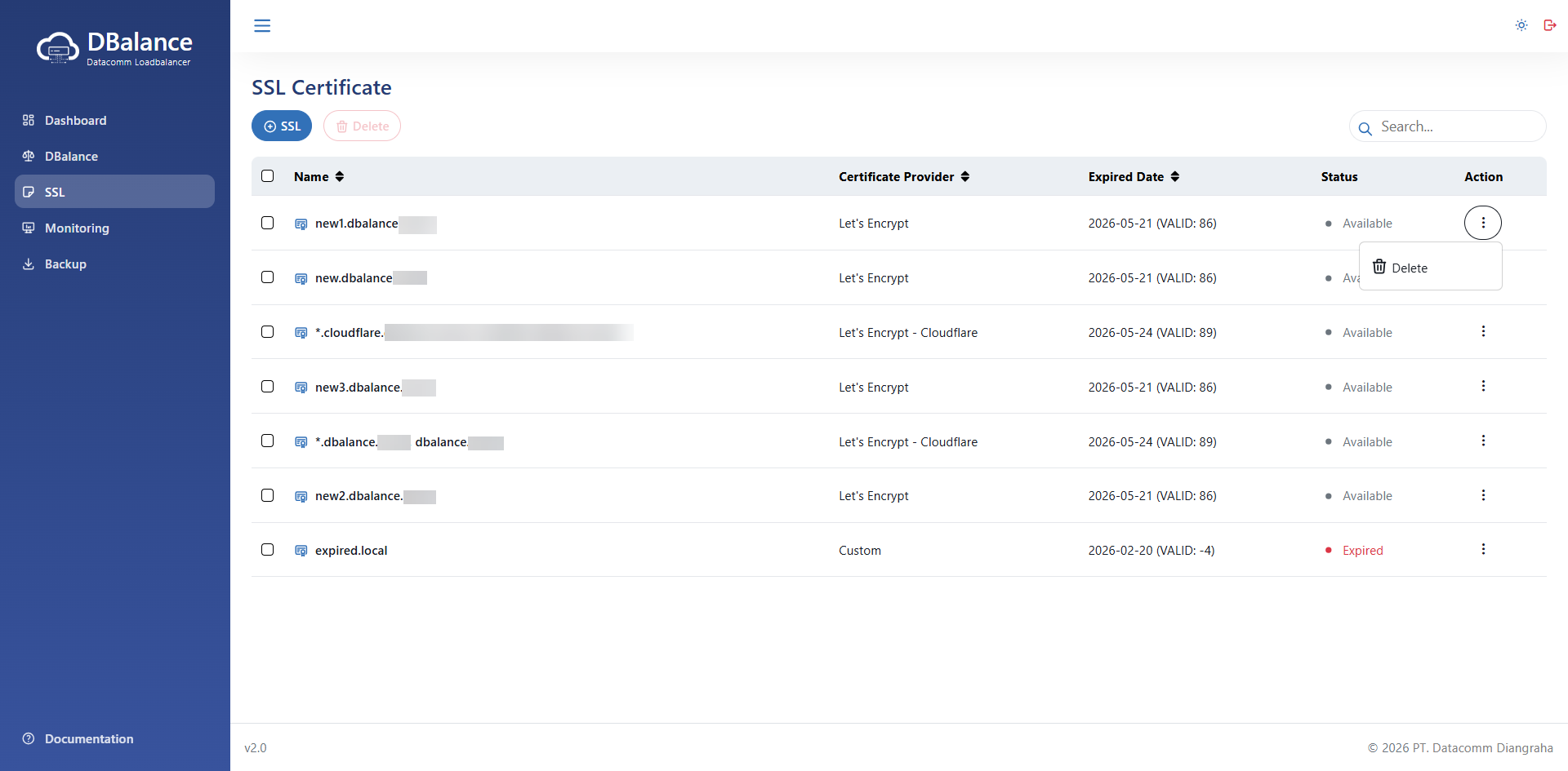 Hapus digunakan untuk menghapus SSL Certificate yang sudah tidak digunakan secara permanen. Untuk melakukan hapus, silakan lakukan langkah-langkah berikut: