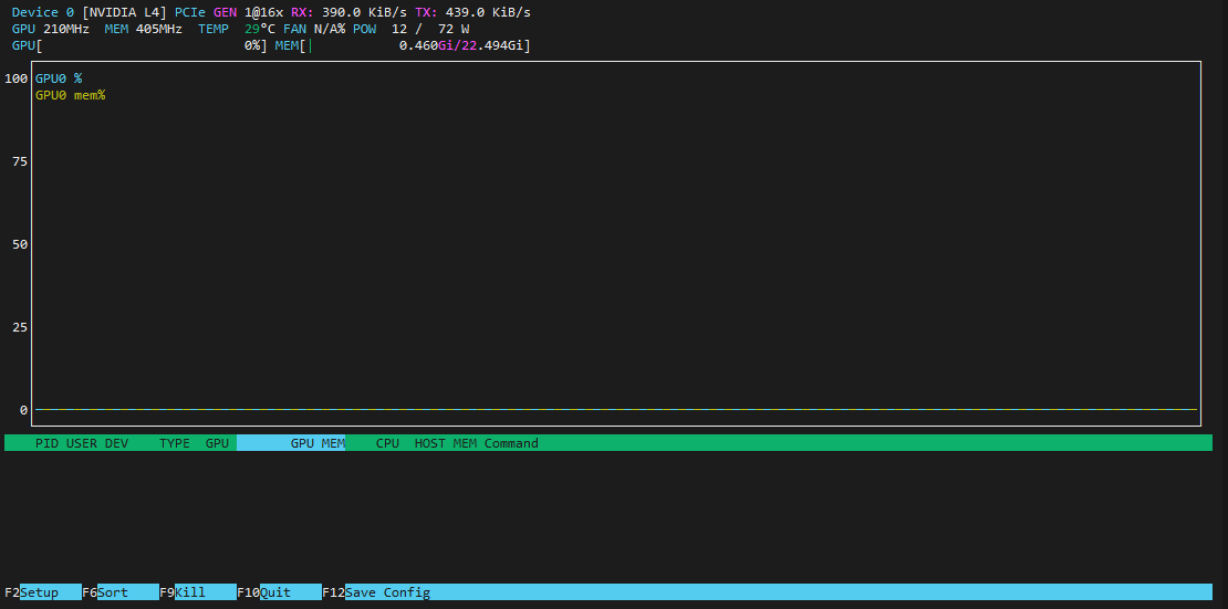 - Untuk memantau performa GPU secara real-time, gunakan nvtop yang dapat diinstal dengan perintah berikut: