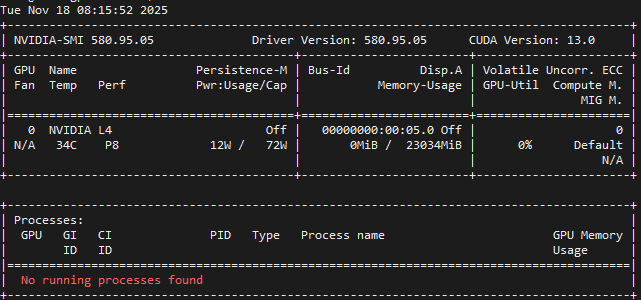 - GPU: NVidia L4 24 GB