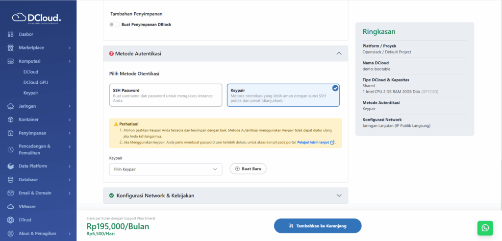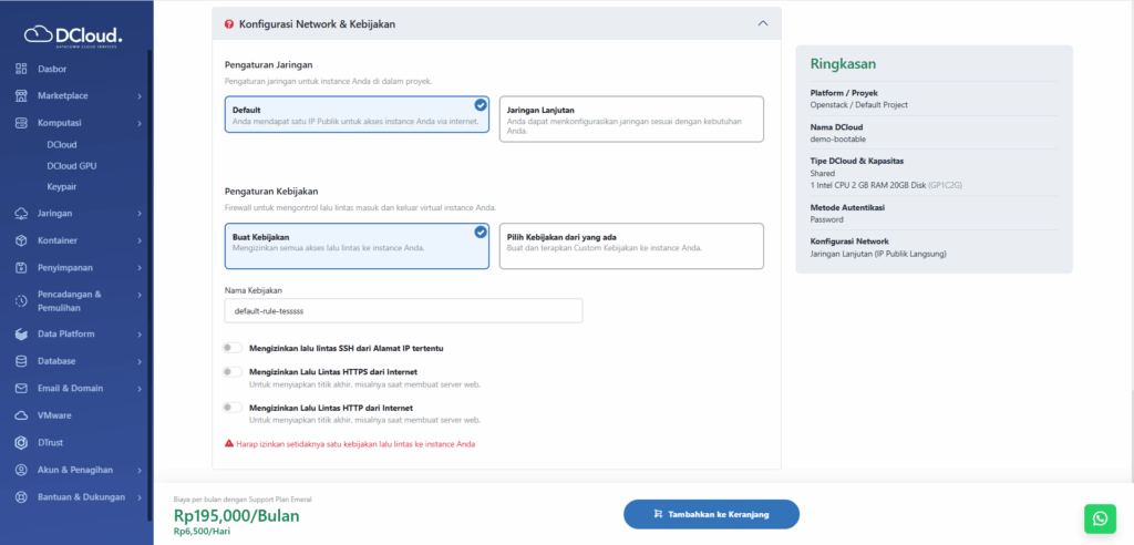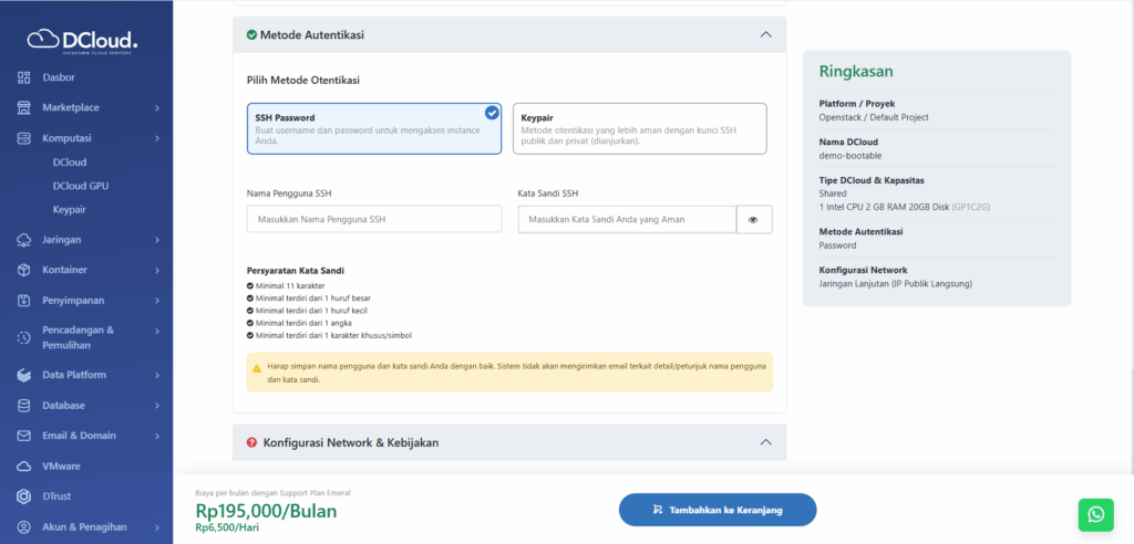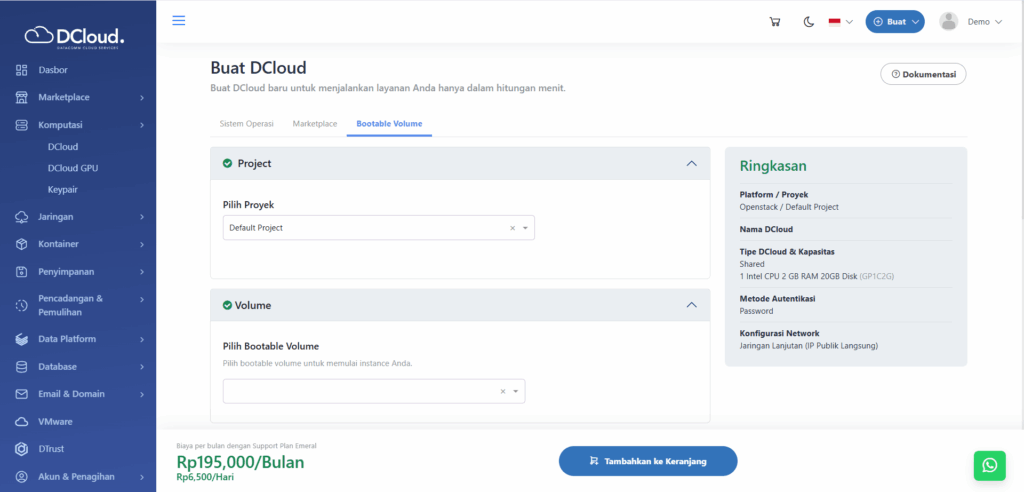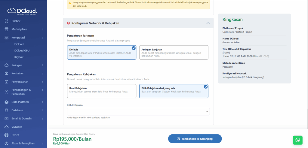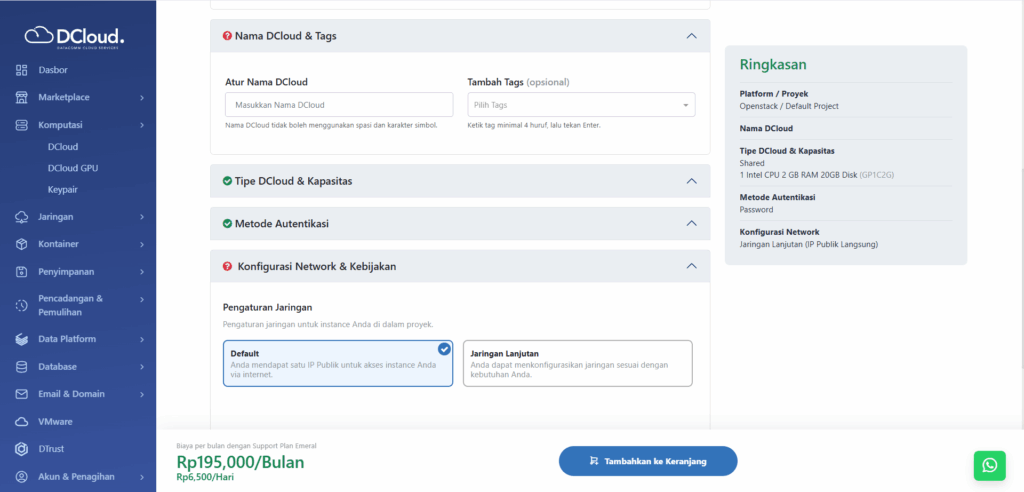 - Buka menu Komputasi dan pilih sub-menu DCloud.