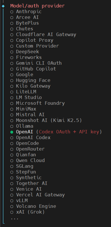 Konfigurasi Model - Pilih Provider: Pilih list provider yang tersedia (contoh: openai api).