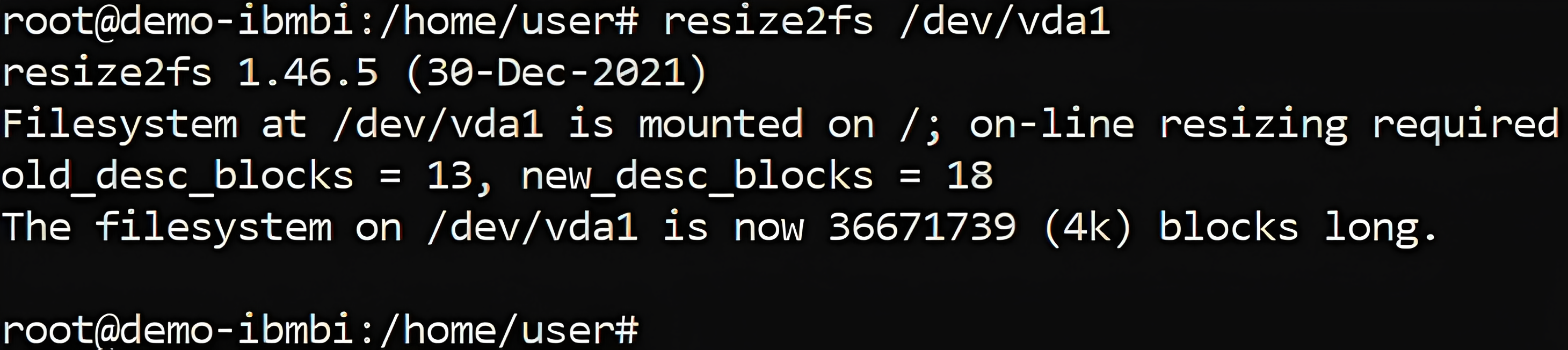 resize2fs /dev/vda1