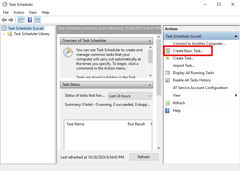 - Pada bagian Action klik Create Basic Task…