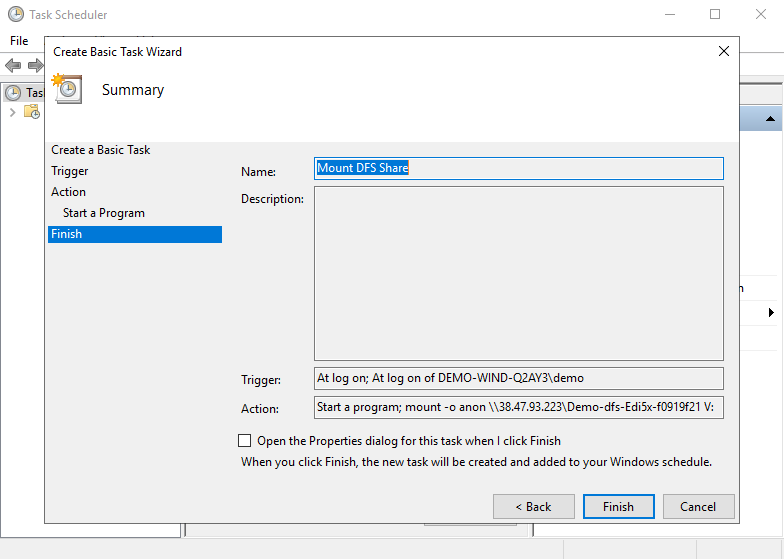 - Anda akan melihat ringkasan tugas yang telah Anda buat. Klik Finish untuk menyelesaikan.
