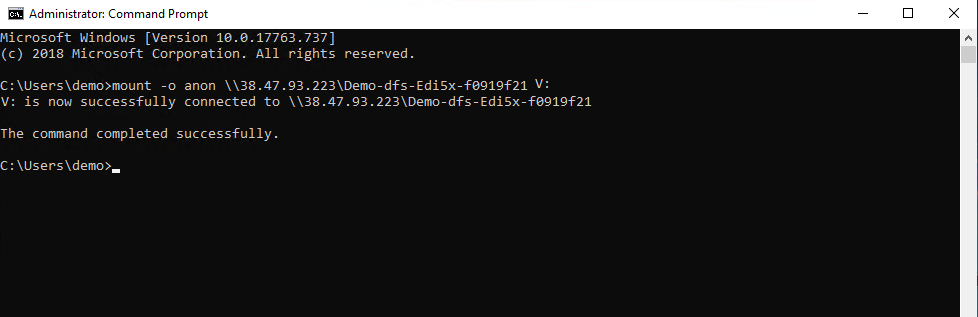 mount -o anon \\<Masukkan IP DFS Anda>\<Masukkan Path DFS Anda> <Masukkan Direktori yang diinginkan>: