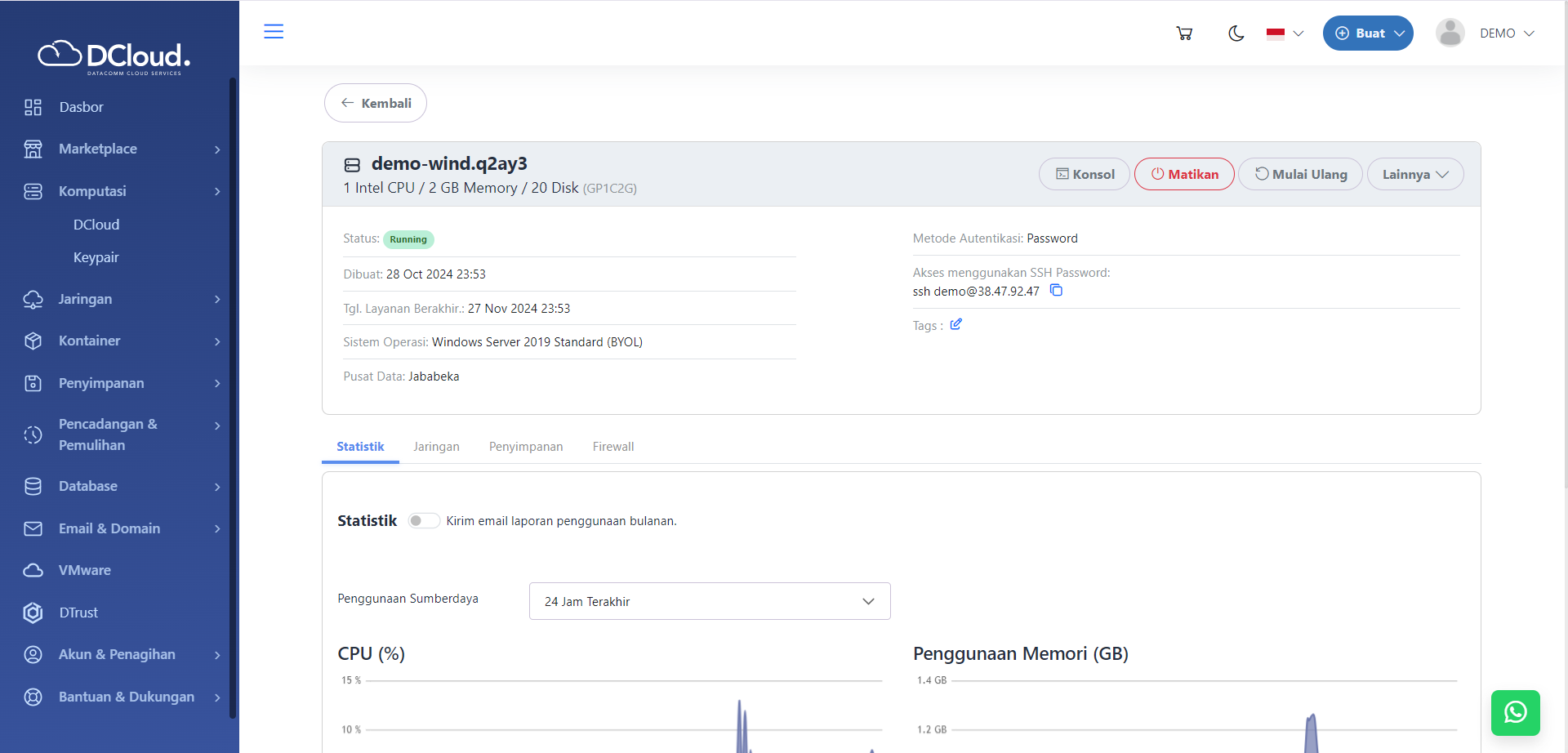 - Memiliki layanan instance DCloud yang menjalankan sistem operasi Windows Server 2016, 2019, atau 2022.