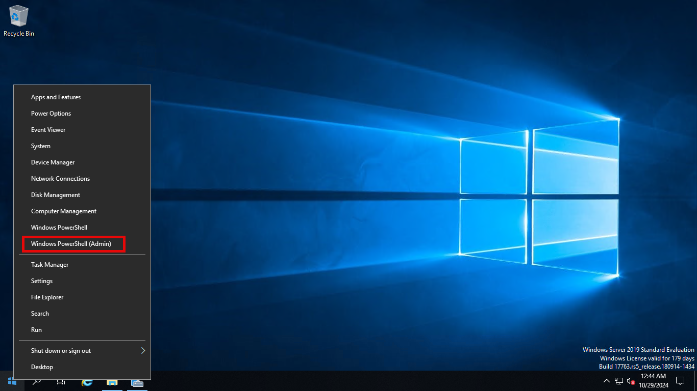 - Membuka PowerShell dengan hak akses Administrator dengan cara klik kanan pada menu Start, kemudian pilih Windows PowerShell (Admin).