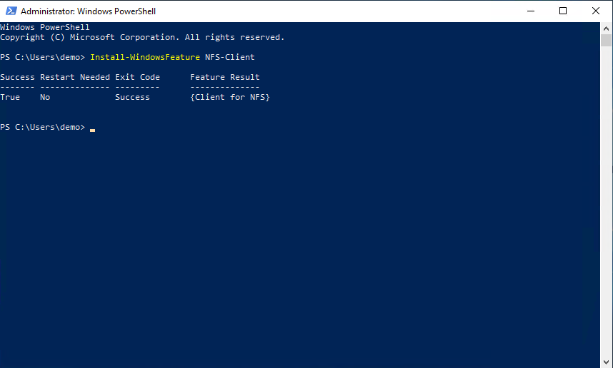 Install-WindowsFeature NFS-Client