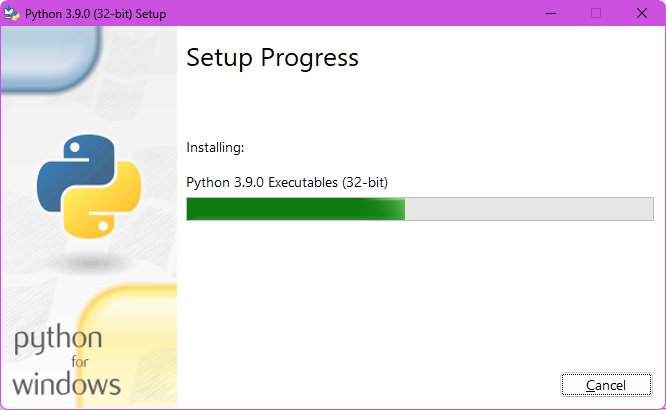 Gambar 2 Instalasi Python 3.9.0 - Tunggu hingga proses Instalasi selesai