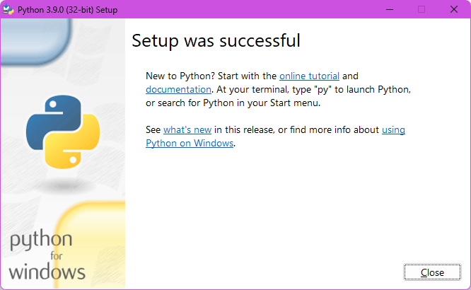 Gambar 4 Instalasi Python 3.9.0 Berhasil
