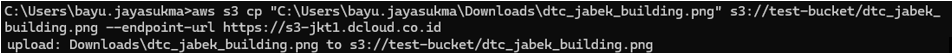 aws s3 cp <path/local/file> s3://<nama-bucket>/<nama-file> --endpoint-url <URL DOBJECT>